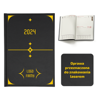 Kalendarz Książkowy A5 Dzienny Majestic Laser Czarny z Żółtym