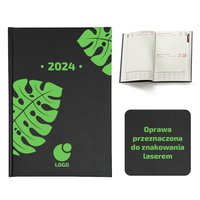 Kalendarz Książkowy A5 Dzienny Majestic Laser Czarny z Zielonym