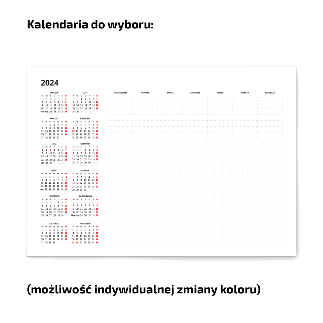 Dzięki niemu, wszystkie niezbędne informacje są zawsze na wyciągnięcie ręki. Rozmieszczenie treści na podkładzie jest starannie zaplanowane, umożliwiając łatwy dostęp do kluczowych danych i zapewniając wygodne zarządzanie czasem.
